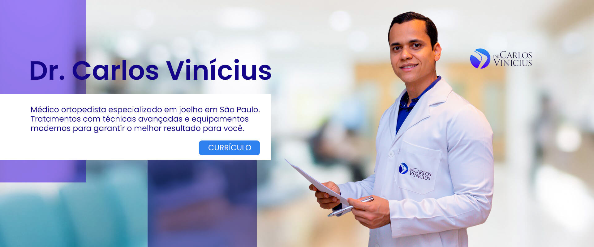 O Dr. Carlos Vinícius é especialista em cirurgia do joelho e tratamento de lesões no esporte.